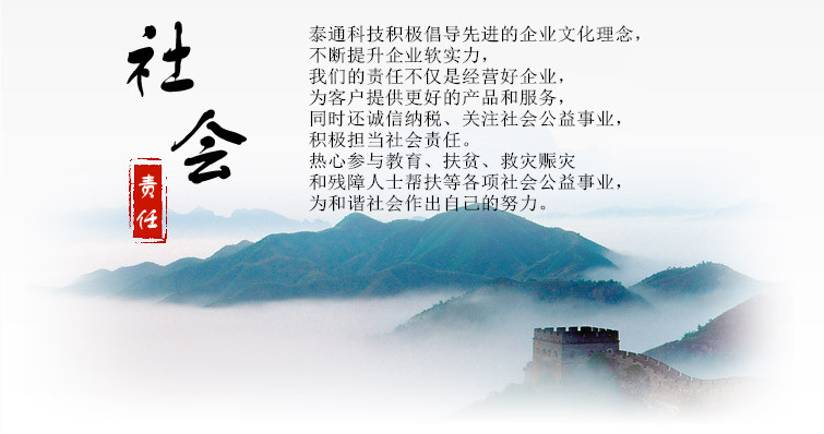 | 公司介紹 發(fā)展歷程 企業(yè)文化 泰通榮譽(yù) 社會責(zé)任 聯(lián)系我們 |