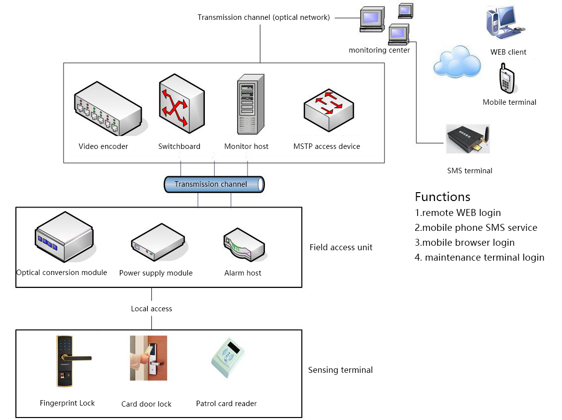 Ticom Tech provides a set of intelligent door control solutions with integration of security and anti-theft door, smart door lock, no card identification, SMS terminal management, remote control, intelligent linkage and centralized monitoring for the newly renovated machine room, the new repeater and the communication signal room. The solution is based on the technology of automatic identification and management without card, remote centralized monitoring and intelligent management, so as to realize the unattended, centralized and efficient management of the communication machine room.