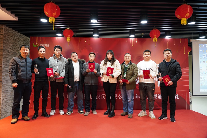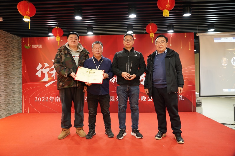 本次先進(jìn)表彰設(shè)立先進(jìn)員工、優(yōu)秀管理干部和工程項(xiàng)目開(kāi)通專項(xiàng)獎(jiǎng)三個(gè)獎(jiǎng)項(xiàng)。經(jīng)層層推薦、評(píng)選,王韜、賈廣金、郁望、姚永、張濤、李志德、王宣和鐘克鵬8位員工榮獲“2021年度先進(jìn)員工”;趙美思、肖雪慧、魏紅兵和李瑋玲4位員工榮獲“2021年度優(yōu)秀管理干部獎(jiǎng)”;為表彰2021年工程項(xiàng)目開(kāi)通維護(hù)中的優(yōu)秀團(tuán)隊(duì),公司特別頒發(fā)“2021年工程協(xié)同開(kāi)通團(tuán)隊(duì)獎(jiǎng)”,工程技術(shù)中心副總監(jiān)李振峰、卞周進(jìn)和張雷一同上臺(tái),作為團(tuán)隊(duì)獎(jiǎng)的代表上臺(tái)接受了公司授予的獎(jiǎng)勵(lì)。公司高級(jí)副總裁倪小龍、總工程師陳建平及監(jiān)事長(zhǎng)袁志杰分別為為各位獲獎(jiǎng)?wù)哳C發(fā)了證書(shū)和獎(jiǎng)杯并親切合影留念。