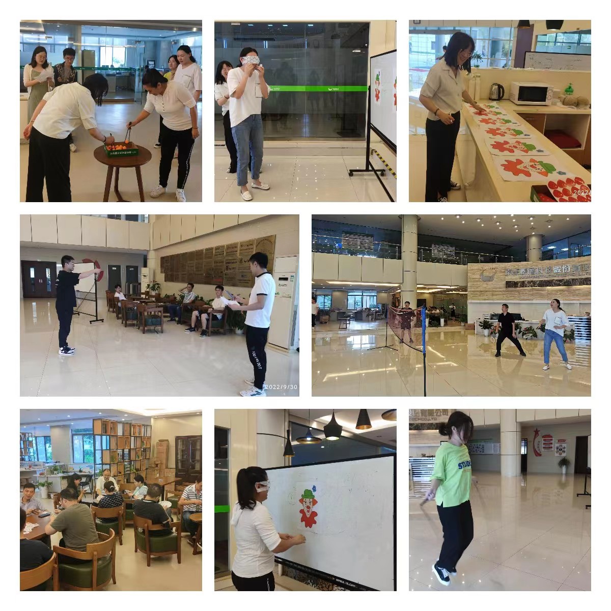 本次“迎國慶”活動共設(shè)有“文體活動”、“趣味游戲活動”、“智力游戲(摜蛋)”三個大項目,其中“文體活動”包含跳繩、羽毛球、夾乒乓球三個小活動,“趣味游戲活動”包含貼鼻子游戲。