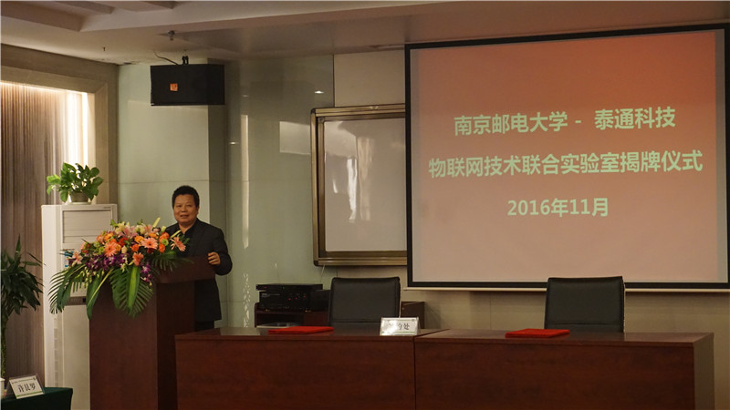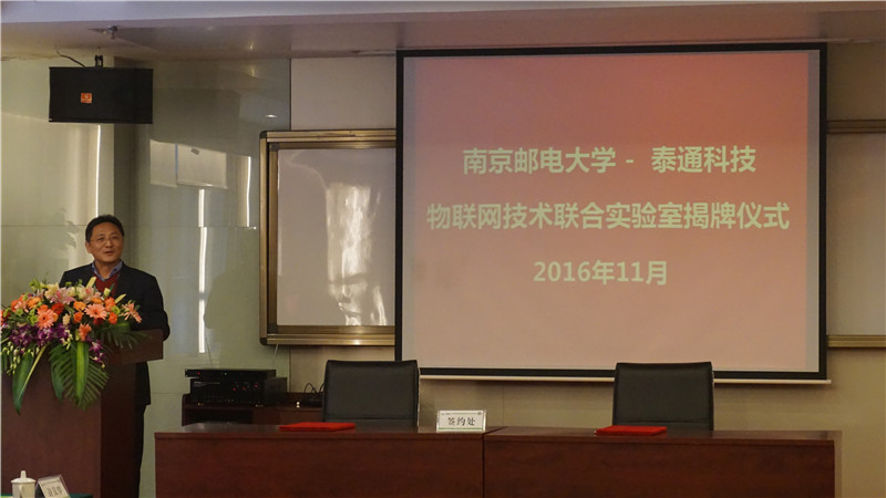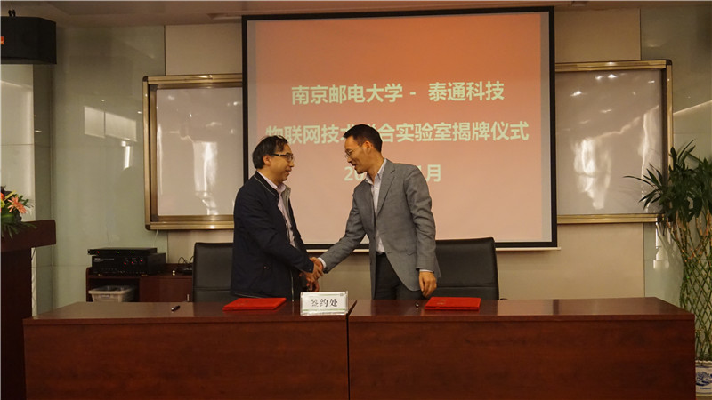 揭牌儀式上泰通科技總工程師陳建平與南京郵電大學(xué)通信技術(shù)研究所副所長楊龍祥進(jìn)行了現(xiàn)場簽約,朱校長和吉總共同為“物聯(lián)網(wǎng)聯(lián)合實驗室”揭牌。