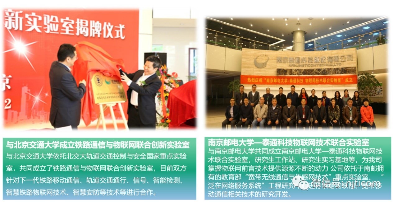 科技創(chuàng)新的成功與建立產(chǎn)學(xué)研合作平臺、引進(jìn)高層次的技術(shù)團(tuán)隊(duì)、重視技術(shù)人才的培養(yǎng)與激勵等密不可分。目前泰通科技與南京郵電大學(xué)、北京交通大學(xué)、東南大學(xué)、中國科學(xué)技術(shù)大學(xué)、南京航空航天大學(xué)、陸軍工程大學(xué)等多所國內(nèi)知名高校建立了聯(lián)合實(shí)驗(yàn)室和合作關(guān)系,企業(yè)設(shè)立了江蘇省博士后工作站,引進(jìn)了高端人才團(tuán)隊(duì)和雙創(chuàng)人才。
